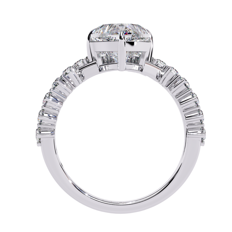 With a total carat weight of 2.62 CT, this ring offers bold sparkle while maintaining refined detailing. The elevated crown design allows light to enter from multiple angles, maximizing fire and brilliance.