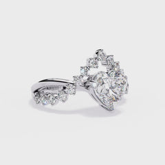 Heart Crown Diamond Ring | Heart-Shaped Halo Tiara Design