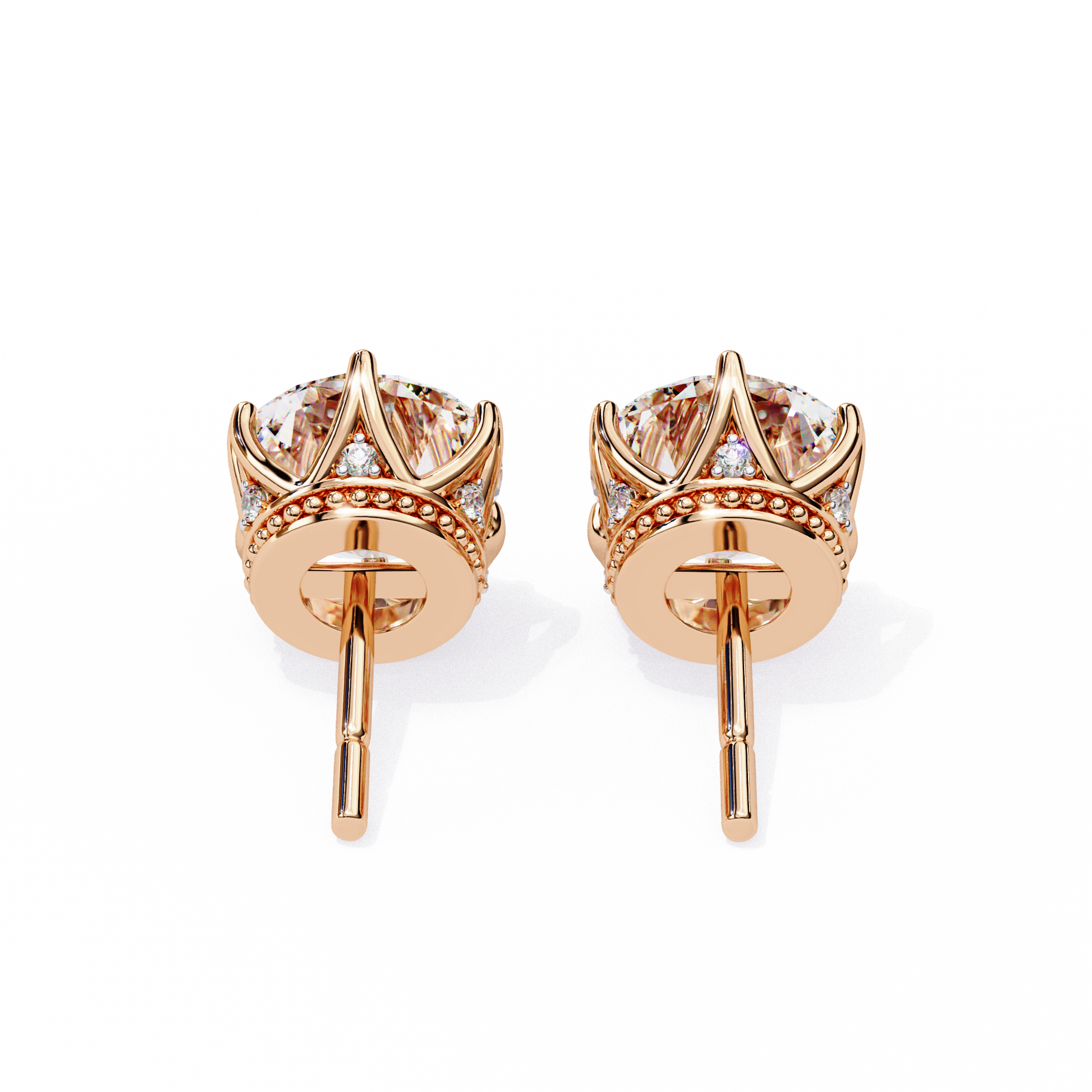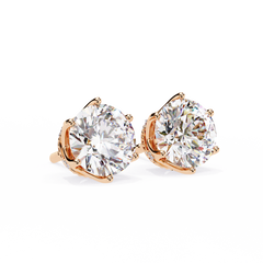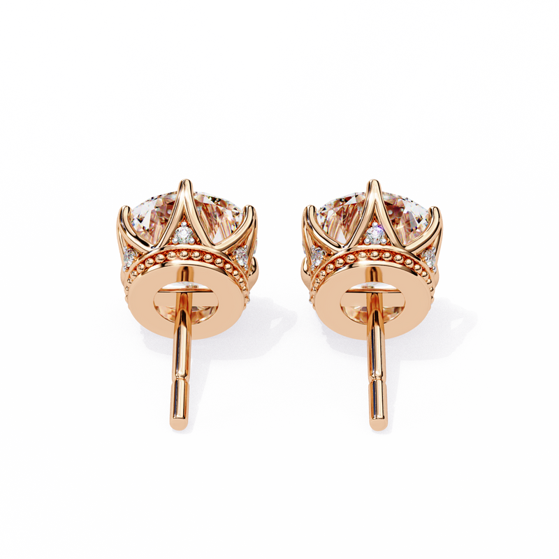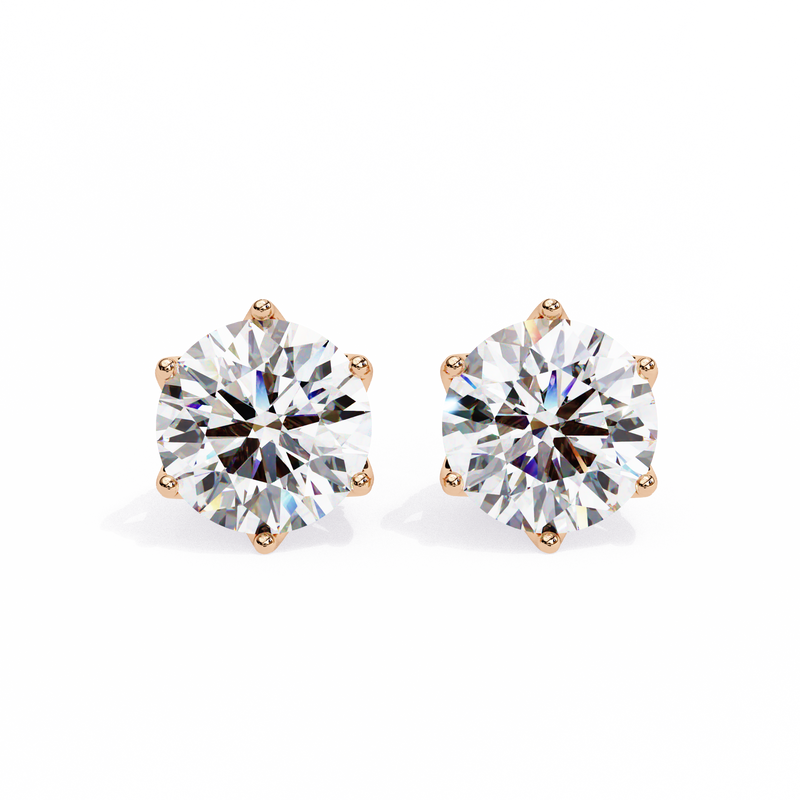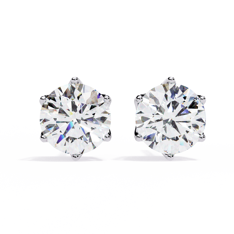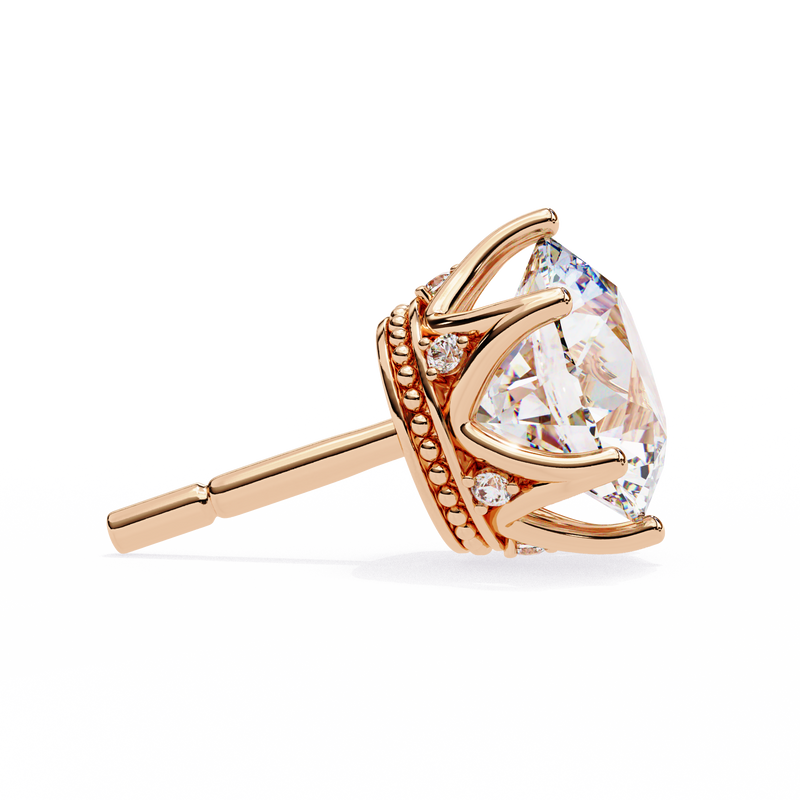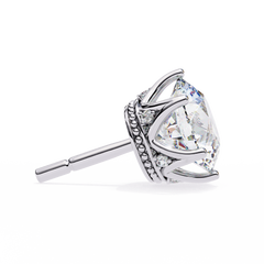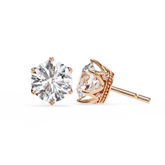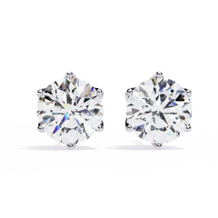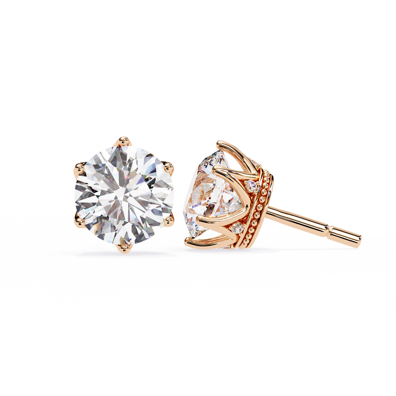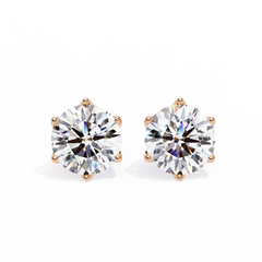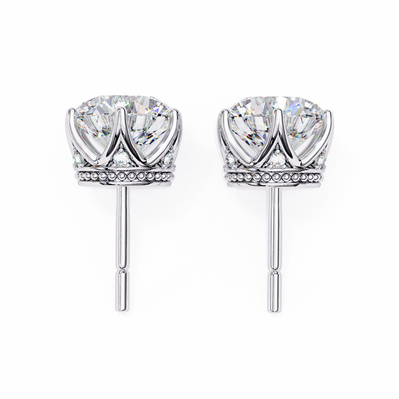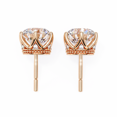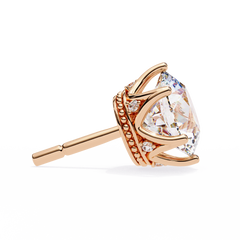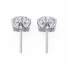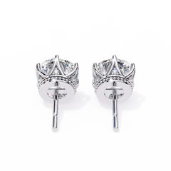 Round Cut Diamond Stud Earrings with Hidden Halo | 6-Prong Setting