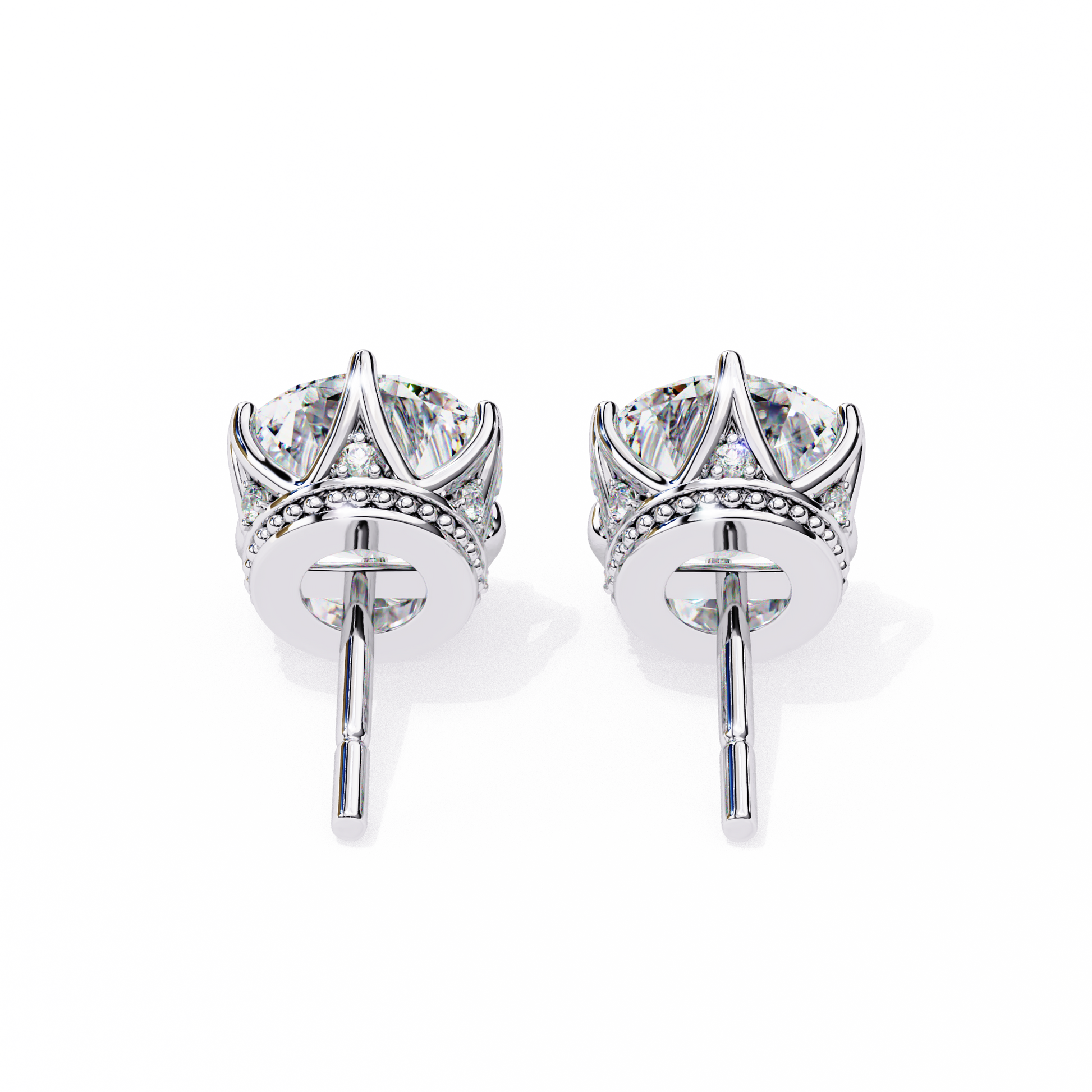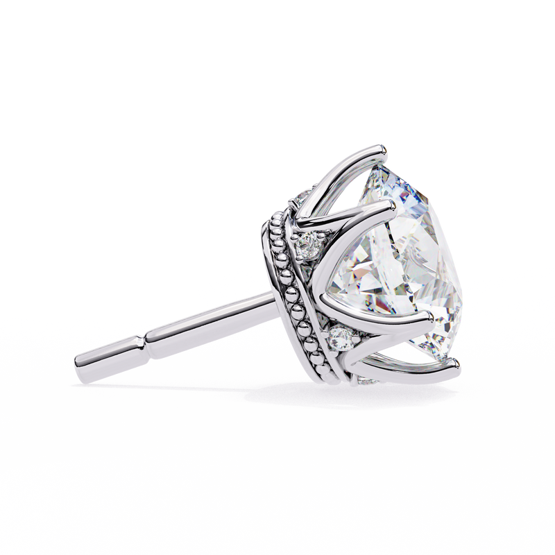 Each stud is beautifully enhanced with a hidden halo design, set with 12 round accent diamonds (0.043 TCW total) that add subtle brilliance from every angle.