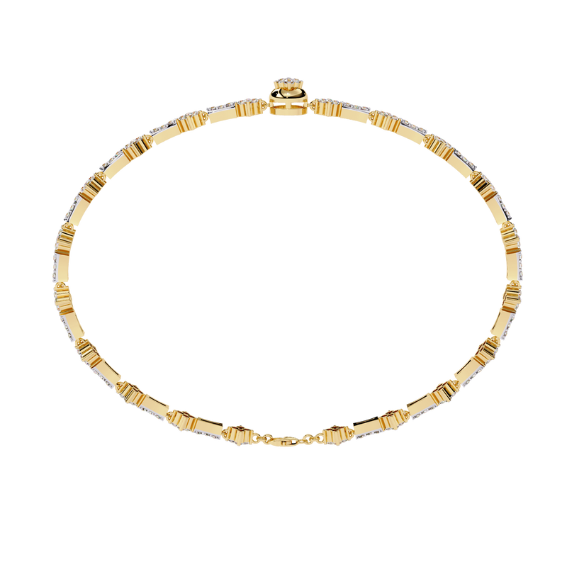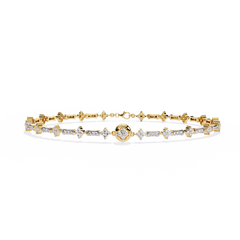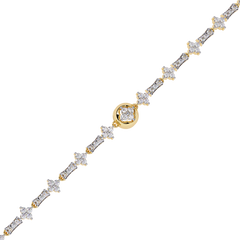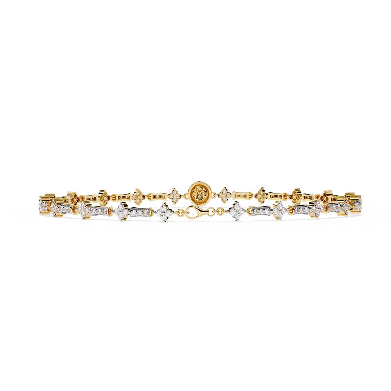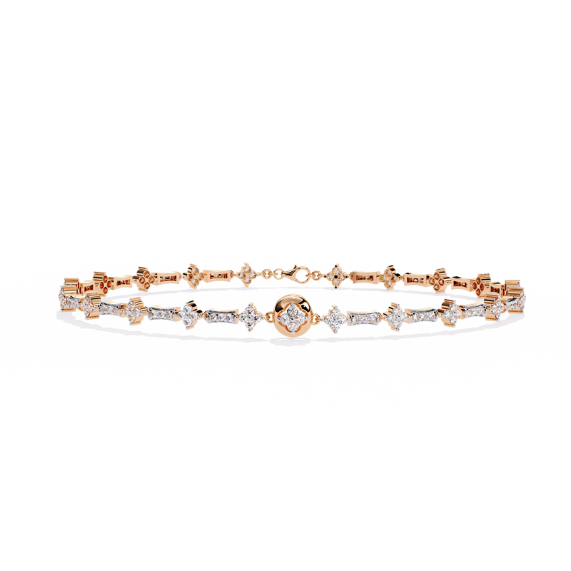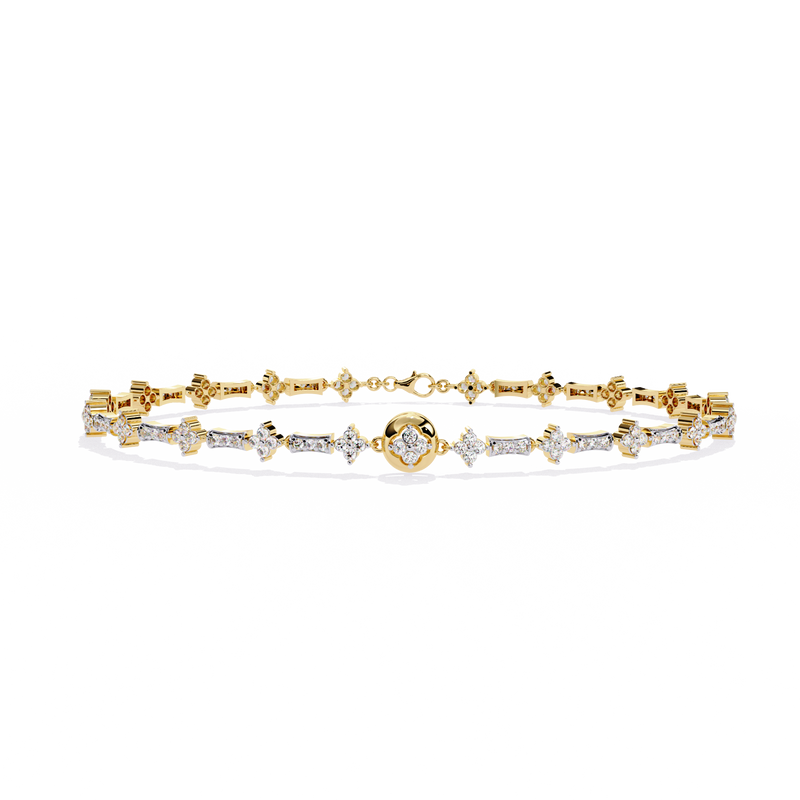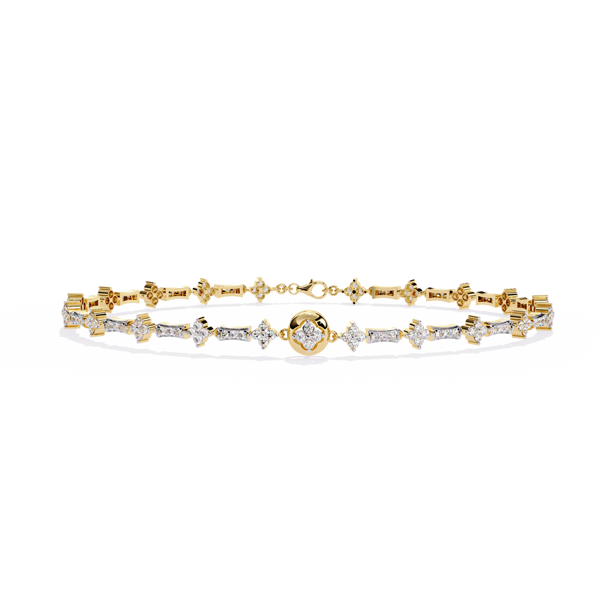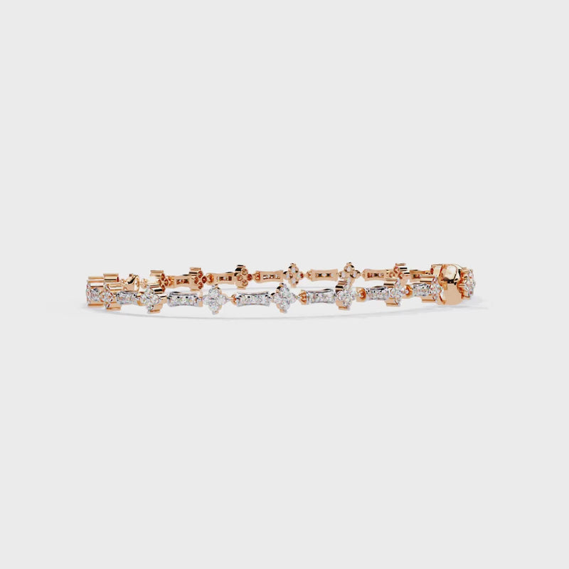 Celebrate elegance with this stunning Starlit Bloom Diamond Bracelet, designed with alternating floral motifs and precision-set round diamonds that create a graceful, flowing pattern around the wrist.