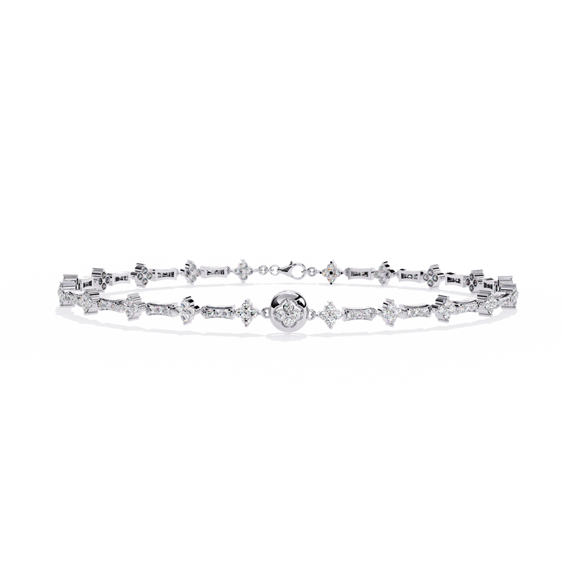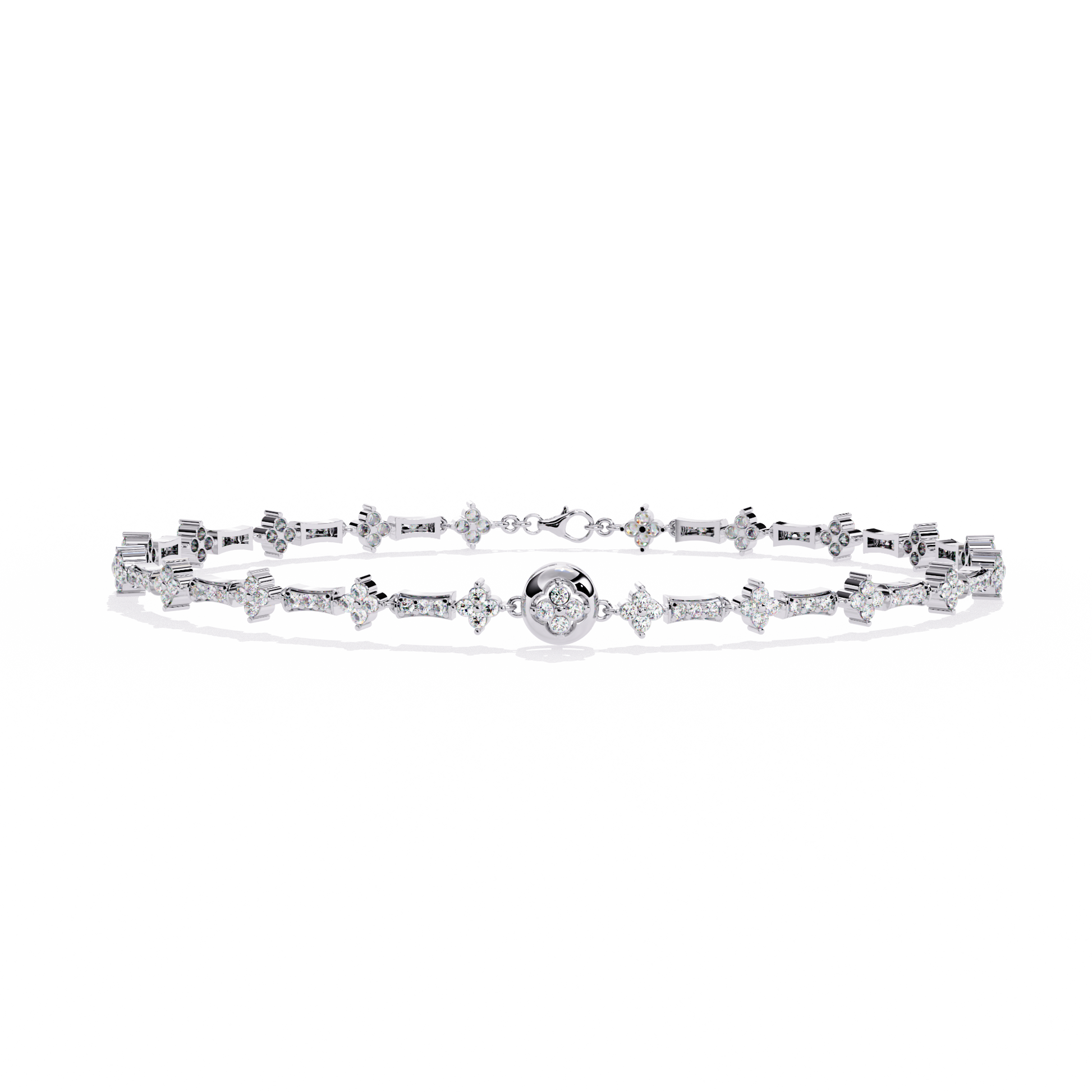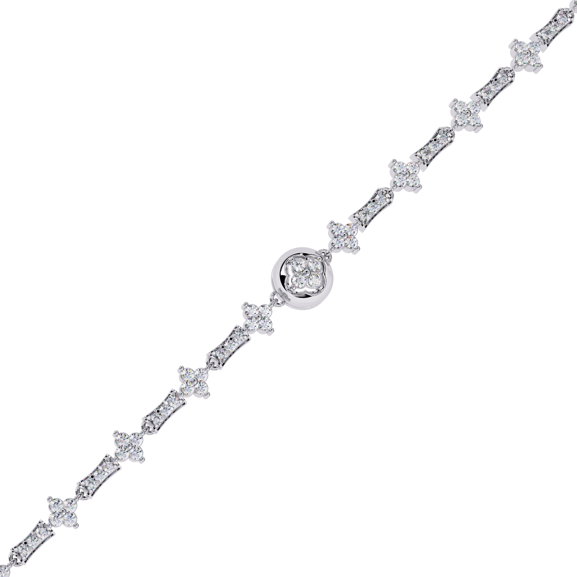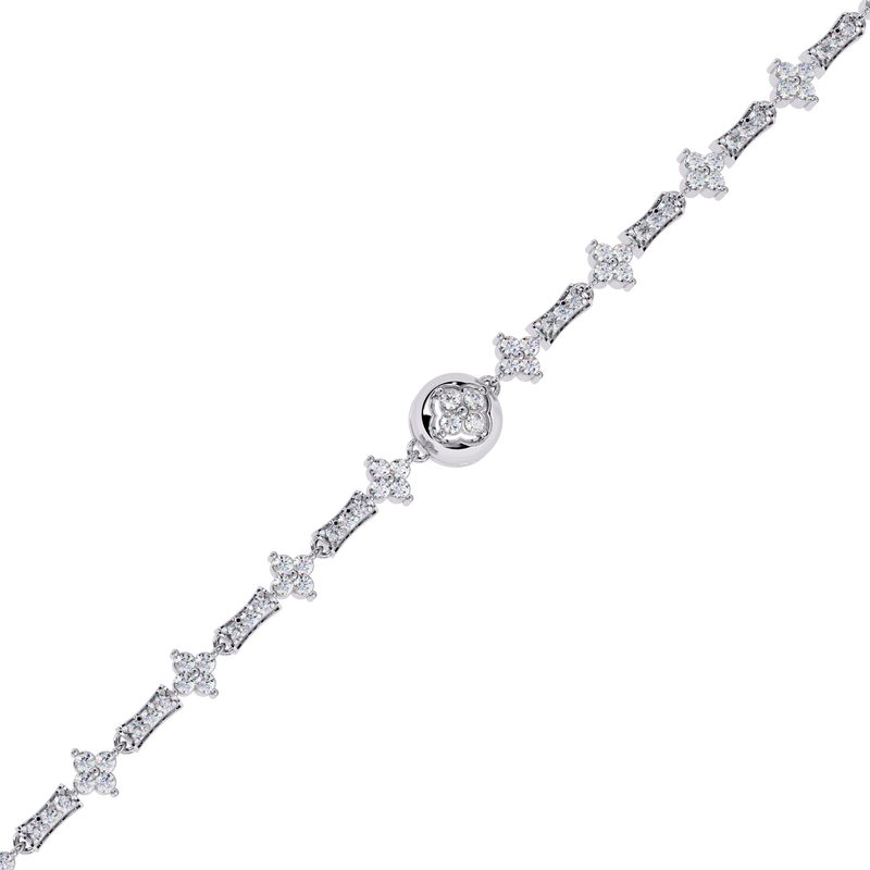 Starlit Bloom Diamond Bracelet – Floral Motif Round Cut Diamond Bracelet