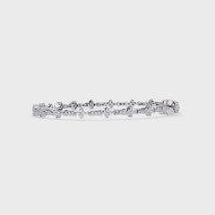 Unlike a traditional tennis bracelet, this design showcases delicate bloom-inspired clusters linked seamlessly to create dimension, texture, and enhanced brilliance. Each floral station sparkles like a star, giving the bracelet its signature celestial charm — often referred to as the Celeste Bloom style.