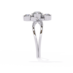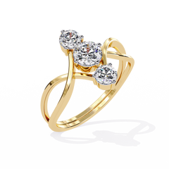 Sophisticated and contemporary, this Three-Stone Round Diamond Ring redefines timeless elegance with a unique criss-cross band design.